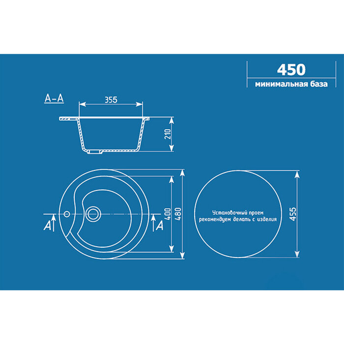 Мойка кухонная Ulgran из искусственного мрамора круглая U-102, цвет: белый, база: 45.5х45.5 см, арт. U-102-331
