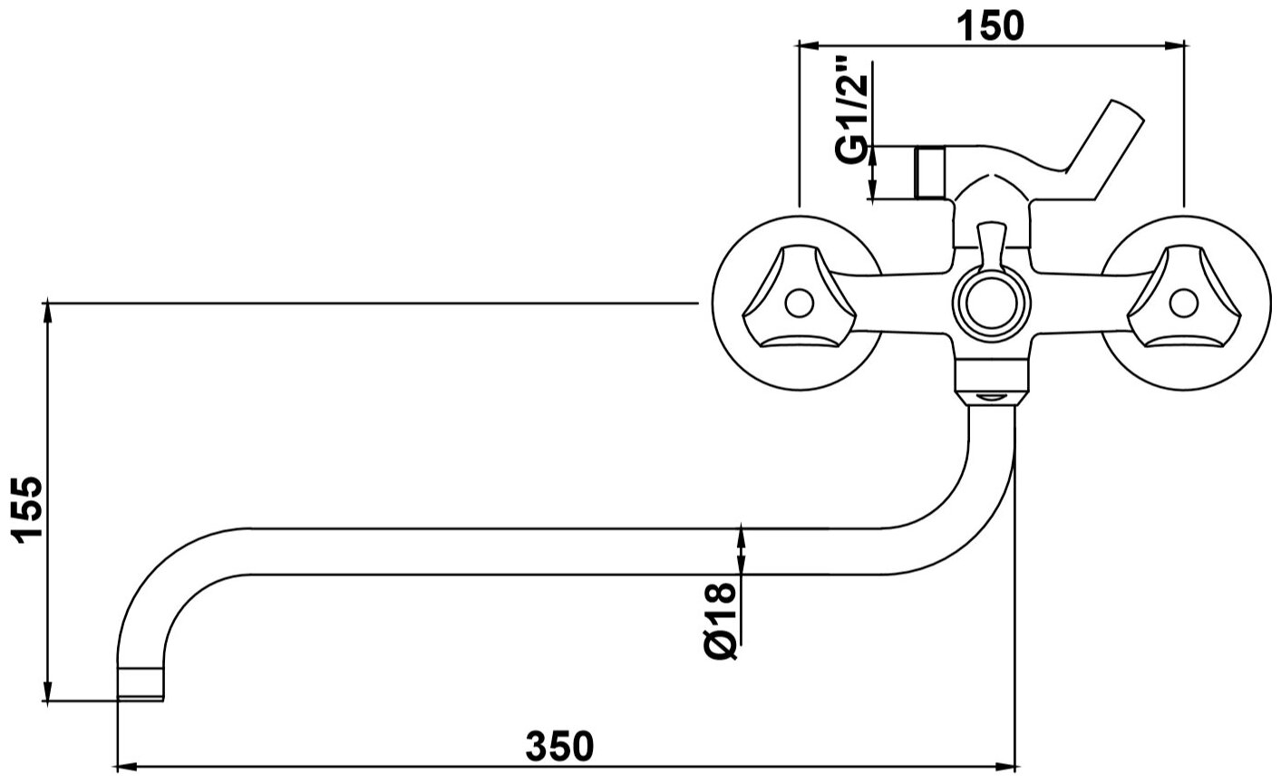 Смеситель универсальный KAISER Delta - 11090 (двухвентильный, цвет хром)