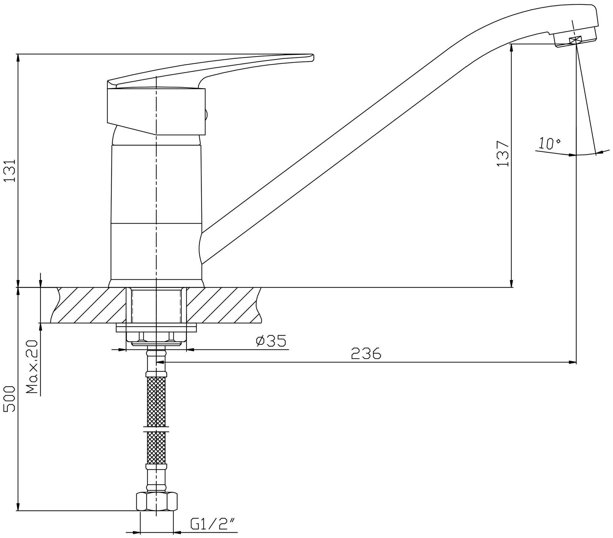 Смеситель для кухни 40к HB4904 HAIBA с/отв п/гайку