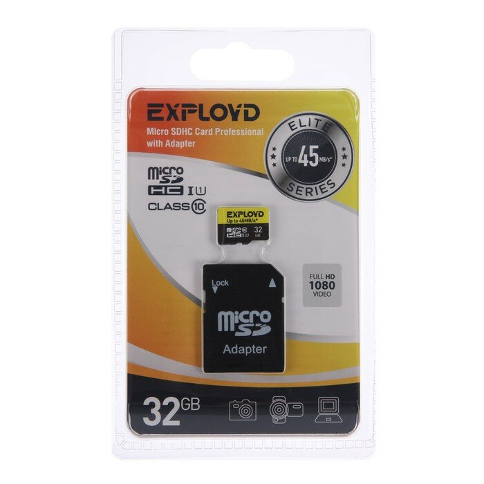 Карта памяти Exployd MicroSD, 32 Гб, SDHC, UHS-1, класс 10, 45 Мб/с, с адаптером SD