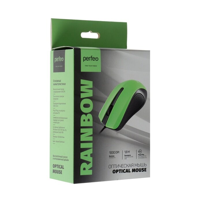 Мышь компьютерная PERFEO (PF-3442) RAINBOW, черный/зеленый 984707