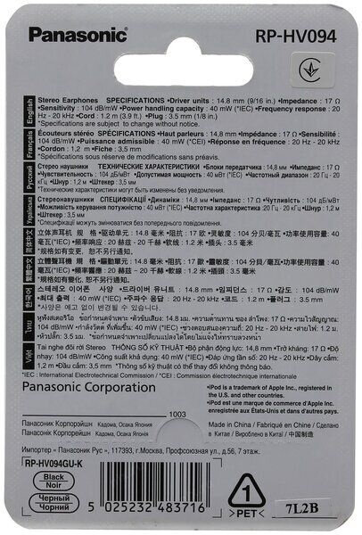 Наушники Panasonic RP-HV094, black