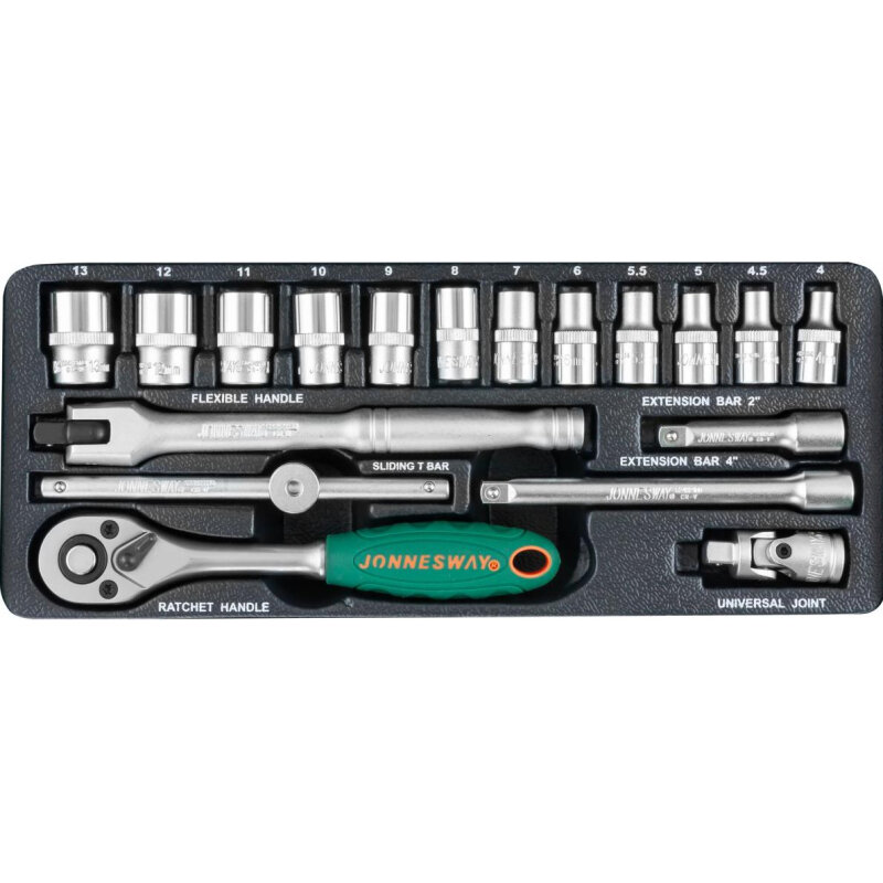 Набор головок JONNESWAY 1/4 4-13мм с аксессуарами 18 предметов