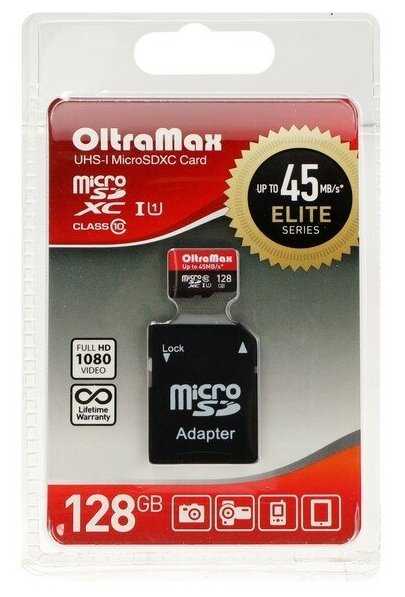 Купить MicroSD 128GB OltraMax Class 10 Elite UHS-I (45 Mb/s) + SD адаптер