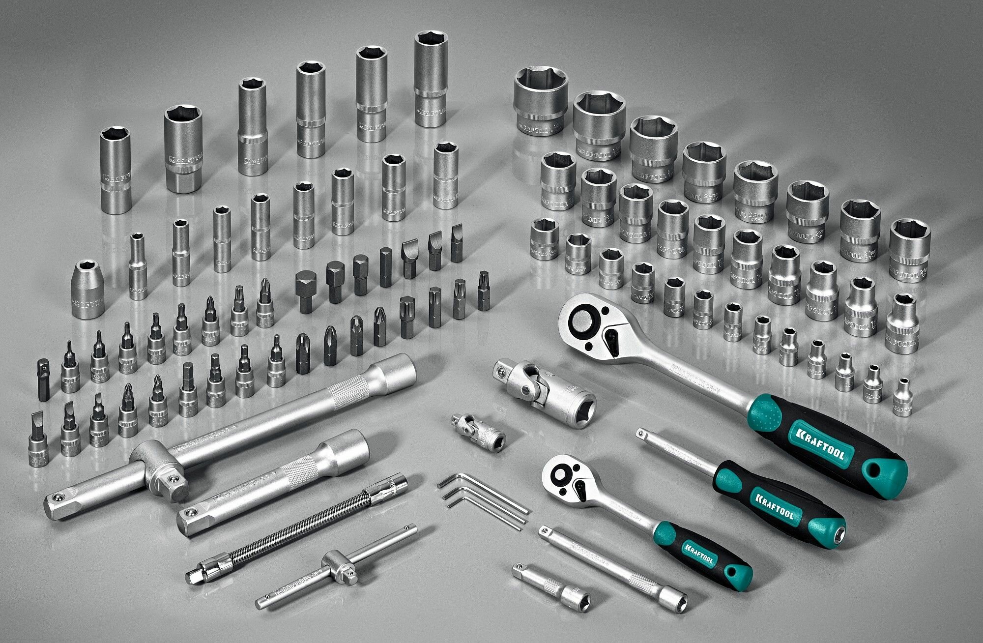 | Головки торцевые подробно | 1/2": 10, 11, 12, 13, 14, 15, 16, 17, 18, 19, 20, 21, 22, 23, 24, 27, 30, 32 мм; длинные 1/2": 14, 15, 17, 19 мм; 1/4": 4, 4.5, 5,… 5.5, 6, 7, 8, 9, 10, 11, 12, 13, 14 мм; длинные 1/4": 6, 7, 8, 9, 10, 11, 12, 13 мм; трещетка 1/2"; свечные 1/2": 16, 21 мм; трещетка 1/4"; удлинитель 1/2": 125, 250 мм; удлинитель 1/4": 50, 100 мм; гибкий удлинитель 1/4": 150 мм; карданный шарнир 1/2", 1/4"; вороток т-образный 1/4"; с битами 1/4": SL4, SL5.5, SL7, PH1, PH2, PZ1, PZ2, T8, T10, T15, T20, T25, T30, H3, H4, H5, H6 ещёскрыть |