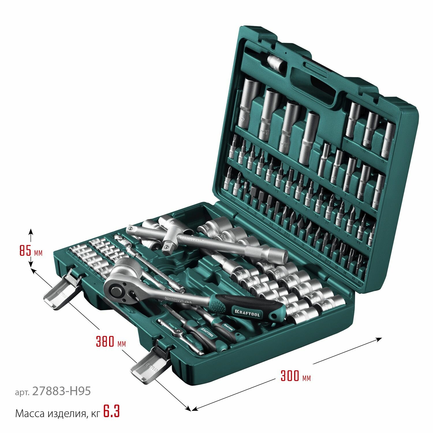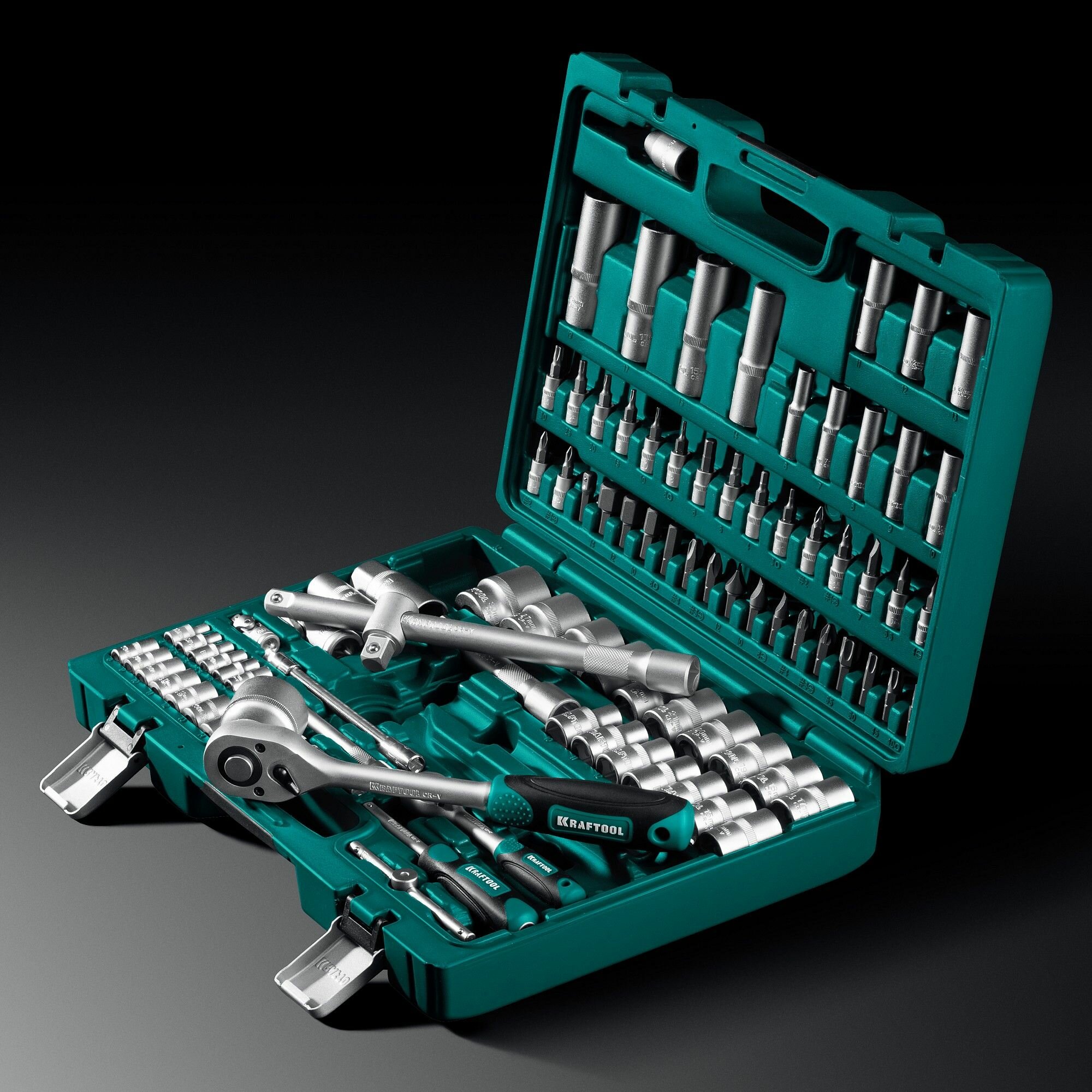 СохранитьНабор автомобильных инструментов Kraftool 27883-H95_z02, 95 предм., зеленый интересное: