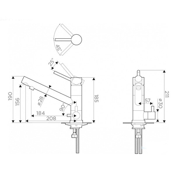 | Длина излива | 208 мм |