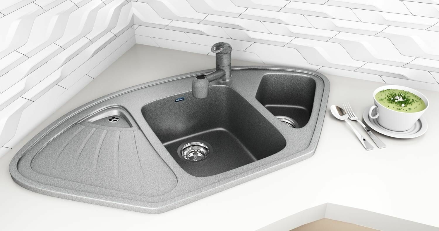 Кухонная мраморная мойка EcoStone ES-29, угловая, 2-х секционная, врезная, цвет терракот/Раковина для кухни