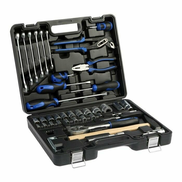 | Инструменты в комплекте | молоток / отвёртки / рукоять для бит / вороток для головок / трещотка / пассатижи / ключи гаечные / клещи переставные / ключи имбусовые (шестигранные) |