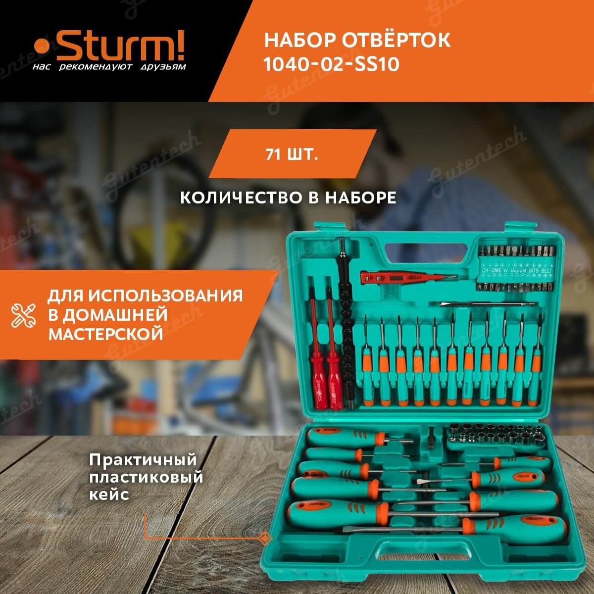 1040-02-SS10 набор отверток 71 предмет (пластик.кейс) Sturm