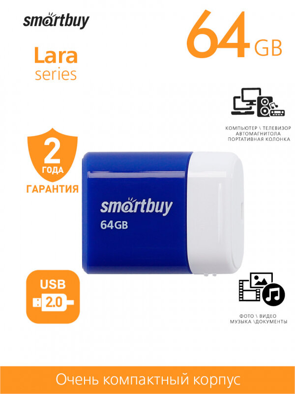 СохранитьUSB флешка SMARTBUY 64Gb Lara blue USB 2.0 интересное: