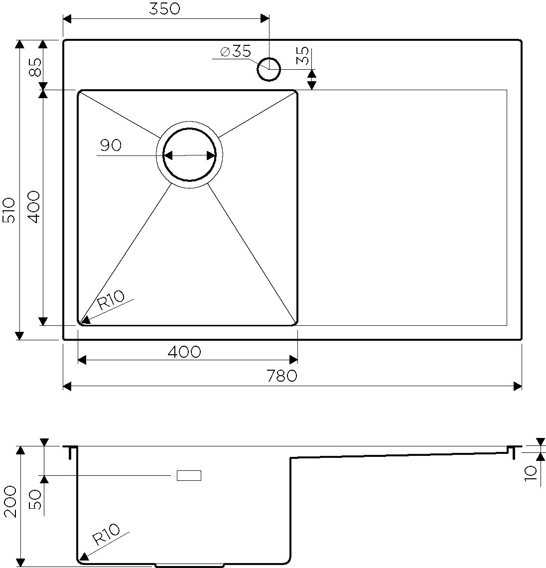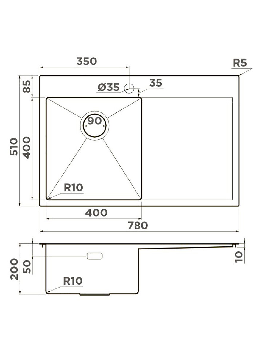 Врезная кухонная мойка LEX Maury 510