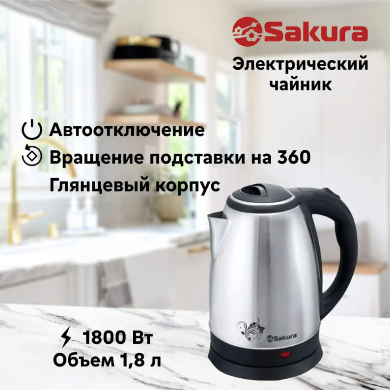 Чайник электрический SAKURA SA-2134S STANDART 1,8л нержавейка глянцевая