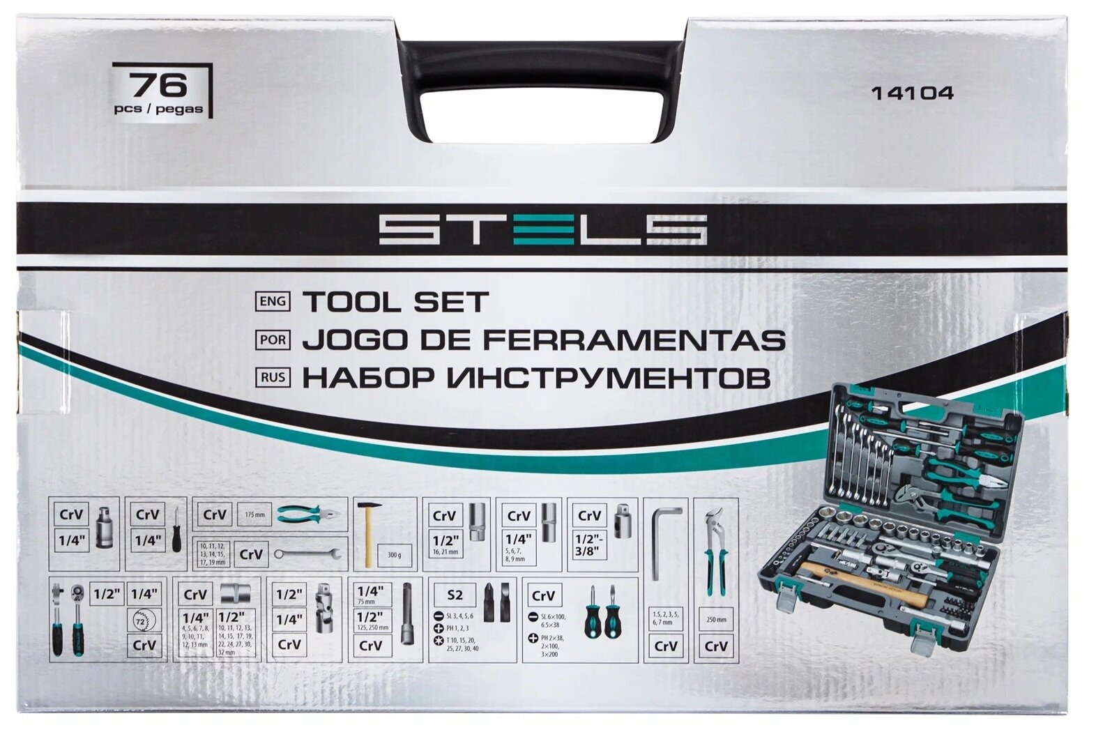 Набор инструментов STELS, 1/2, 1/4, CrV, пластиковый кейс, 76 предметов (14104)