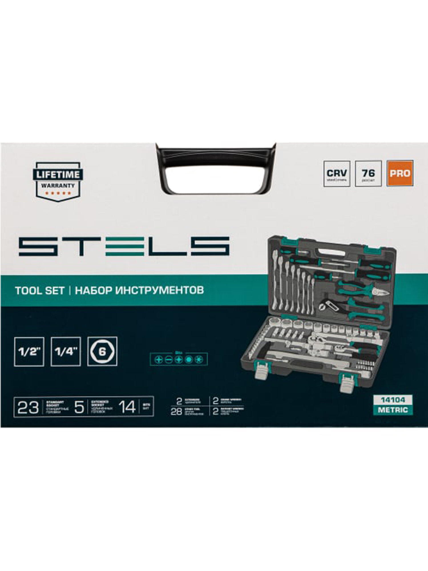 Набор инструментов STELS, 1/2, 1/4, CrV, пластиковый кейс, 76 предметов (14104)