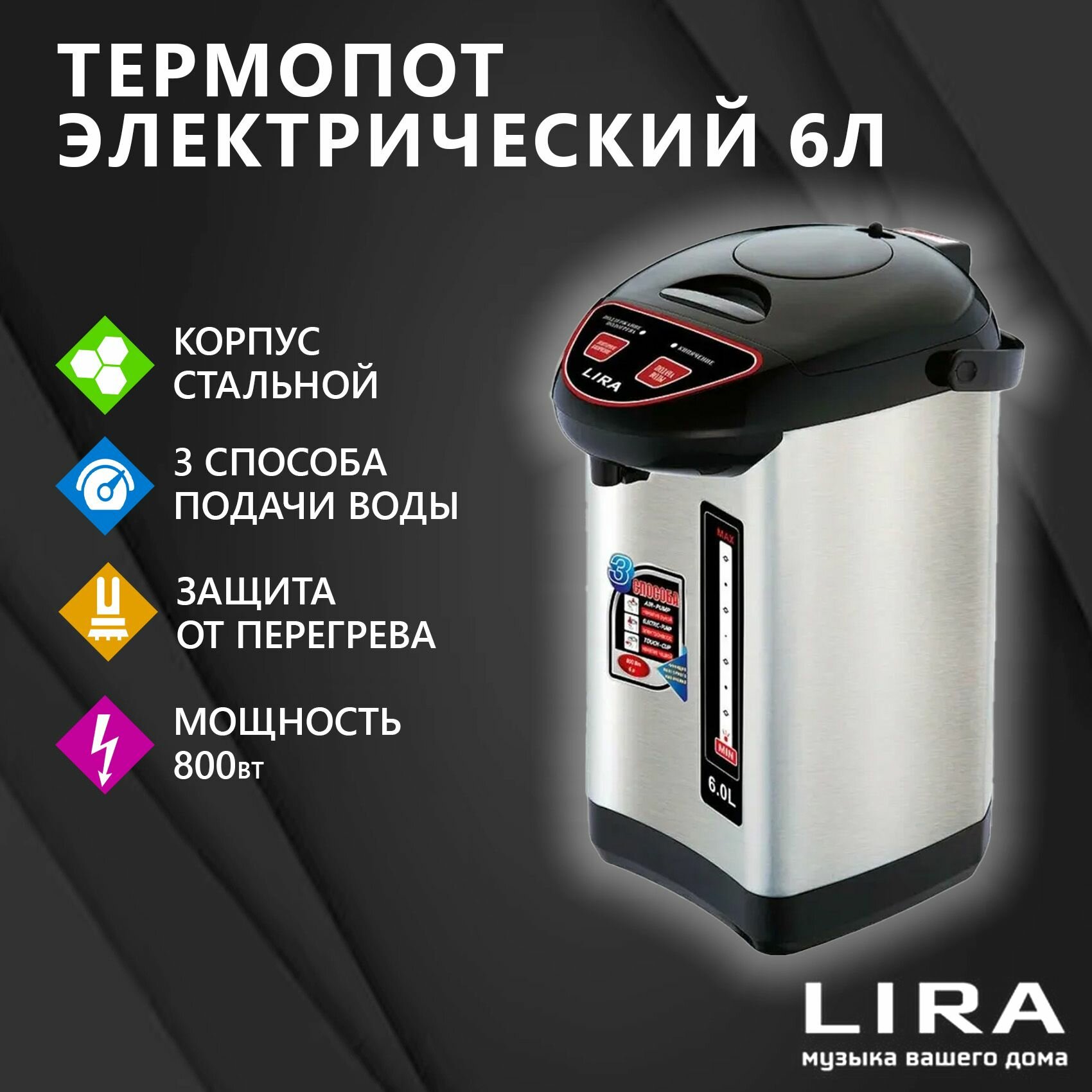 Термопот электрический "LIRA" LR 0403 NEW (нержавеющая саль, объем 6лит, 800Вт)