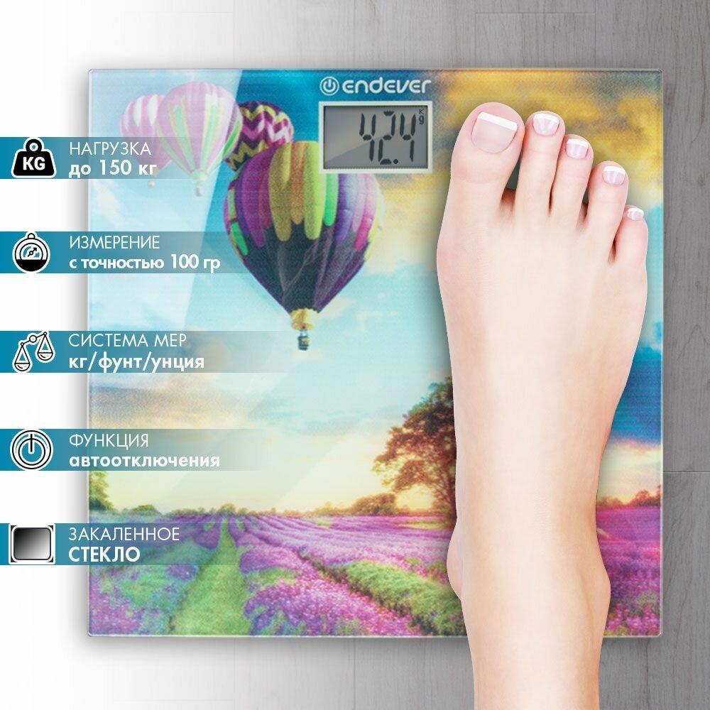 Весы электронные напольные ENDEVER Aurora, 551, до 150 кг, рисунок/лаванда/вохдушые шары