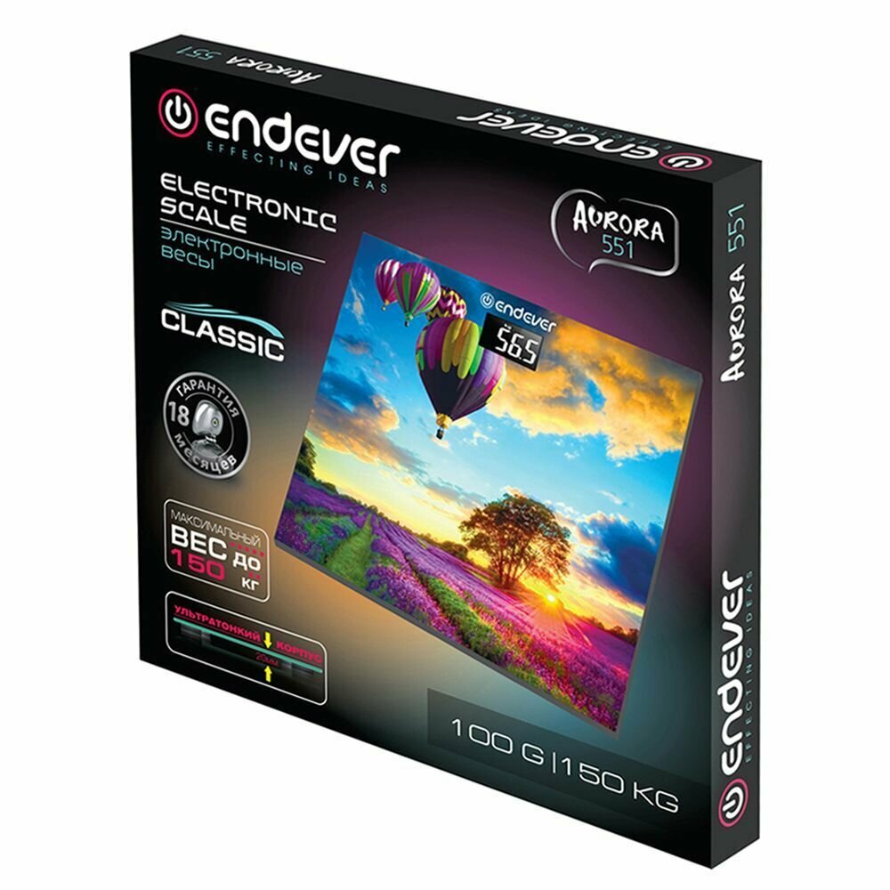 Купить Весы напольные электронные Endever Aurora-551 / рисунок Воздушный Шар / закаленное стекло / до 150 кг