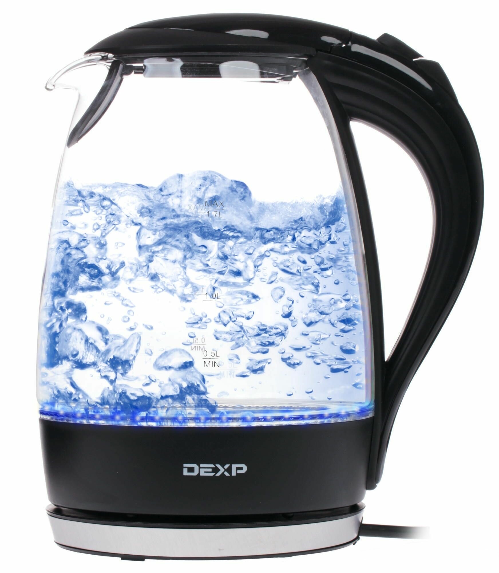Электрочайник DEXP GF-175 Wave черный [пластик, термостойкое стекло, 1.7 л, 2200 Вт, фильтр, дисковый нагреватель]