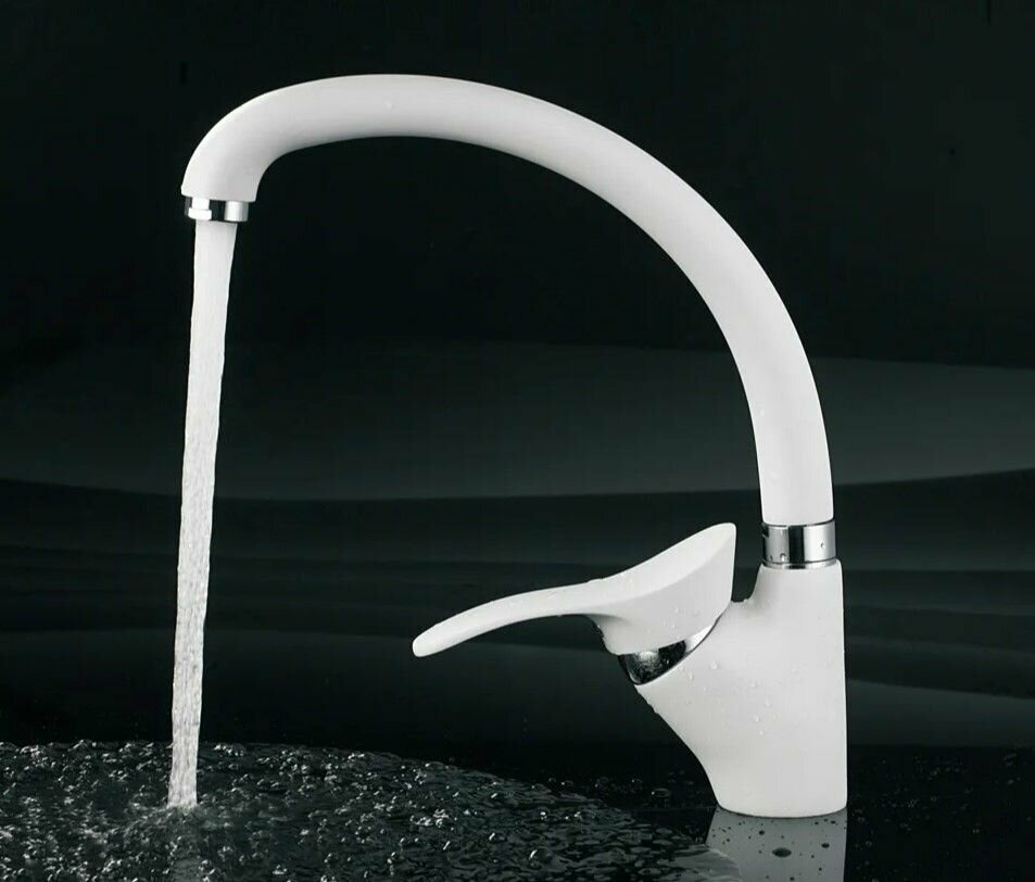 Cмеситель для кухни Accoona A4005G, керамическое покрытие, латунь, белый, матовый(В наборе1шт.)