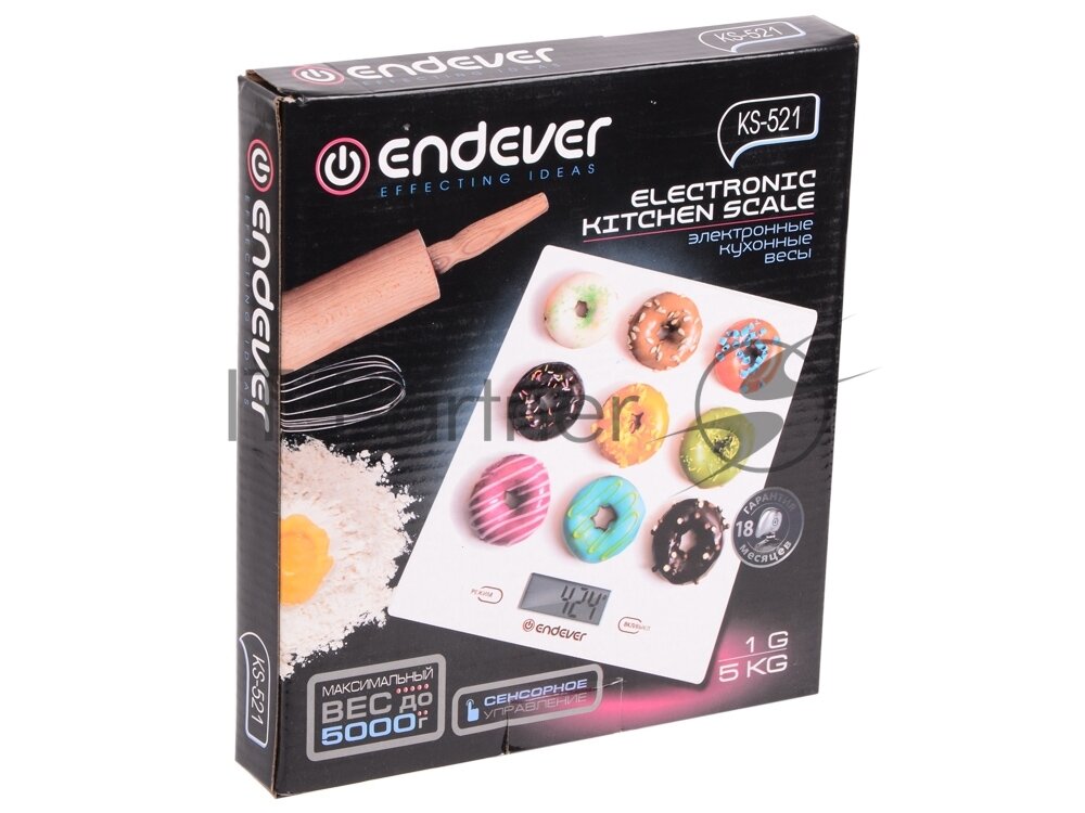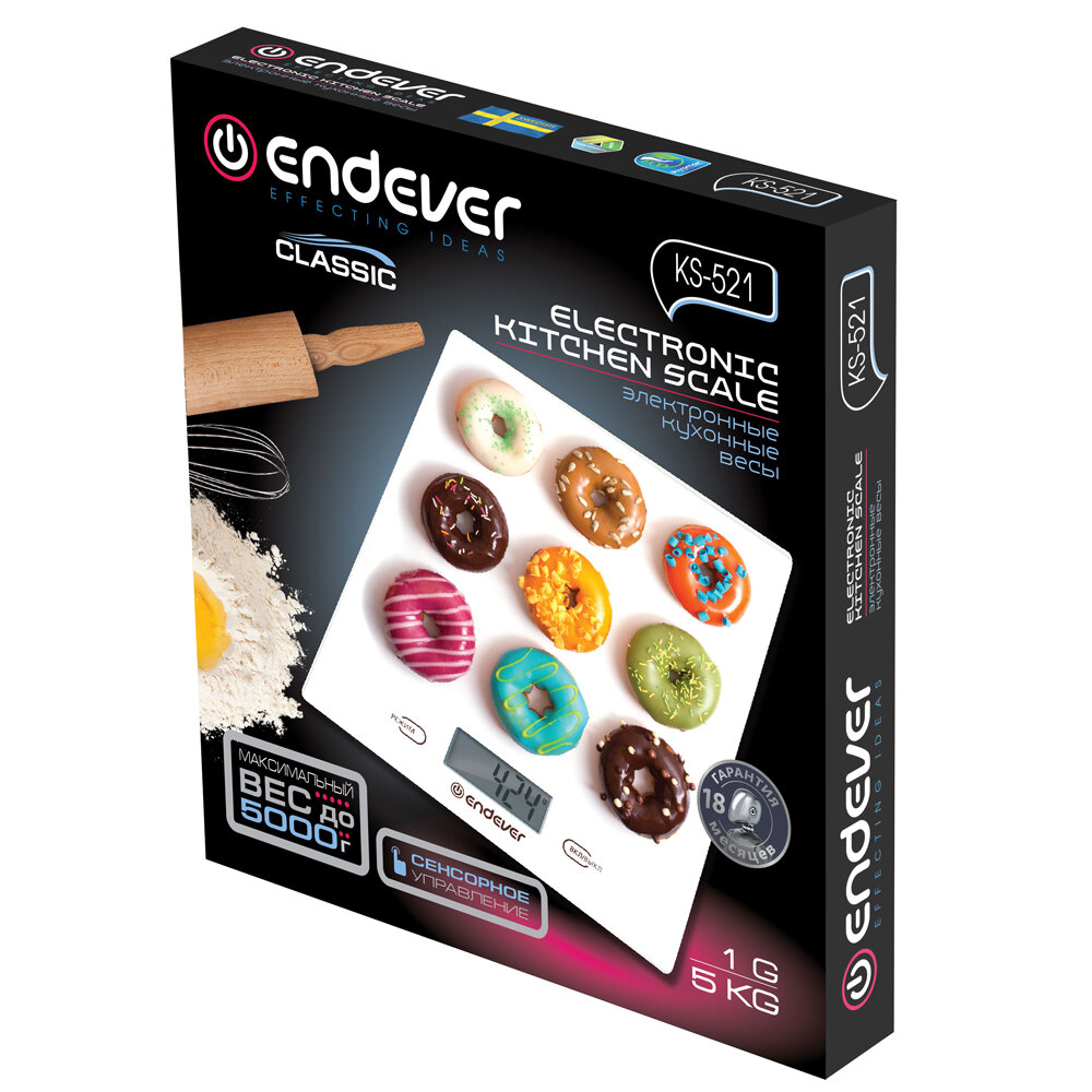 Купить Весы кухонные электронные Endever KS-521, рисунок пончики / рисунок Пончики / от 1г до 5кг