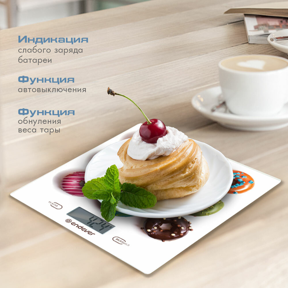 Весы кухонные электронные Endever KS-521, рисунок пончики / рисунок Пончики / от 1г до 5кг интересное: