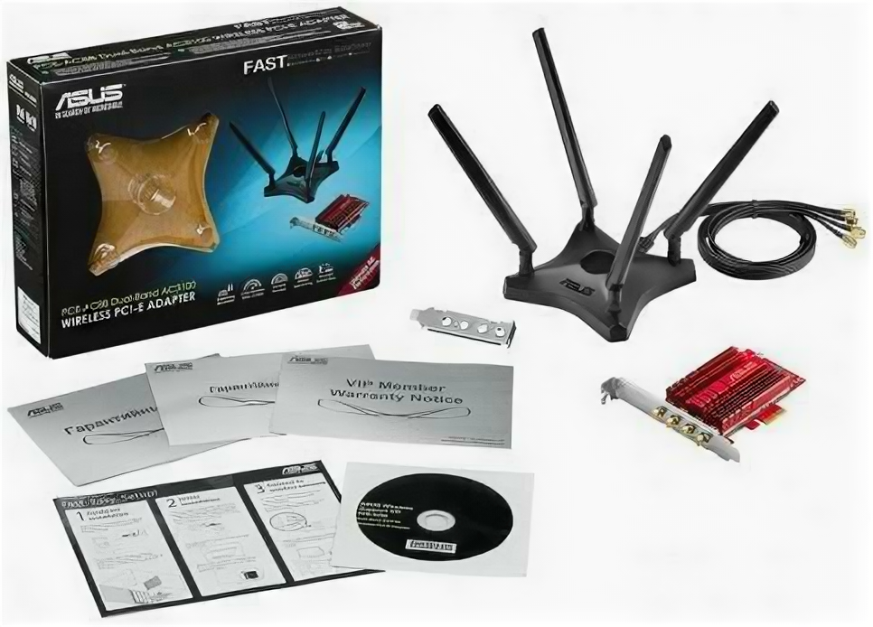 | Минусы: | По сути это PCI wifi адаптер от Broadcom с шильдиком от Asus. К тому же мой компьютер стартует через раз с этим устройством. |