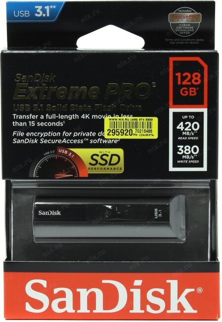 256Gb Sandisk Extreme Pro USB 3.1 Gen 1 (420/380 Mb/s)