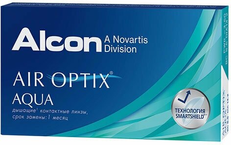 Контактные линзы Alcon, AIR OPTIX AQUA, Ежемесячные, -6,00 / 14,2 / 8,6 / 3 шт.