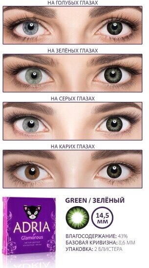 Контактные линзы цветные ADRIA, Adria Glamorous color, Квартальные, GREEN, -3,00 / 14,5 / 8,6 / 2 шт.
