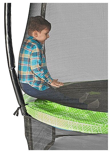 Надежный фиксатор соединения. Особое покрытие пружин, защищающее от коррозии. Износостойкое прыжковое полотно из эластичной ткани. |