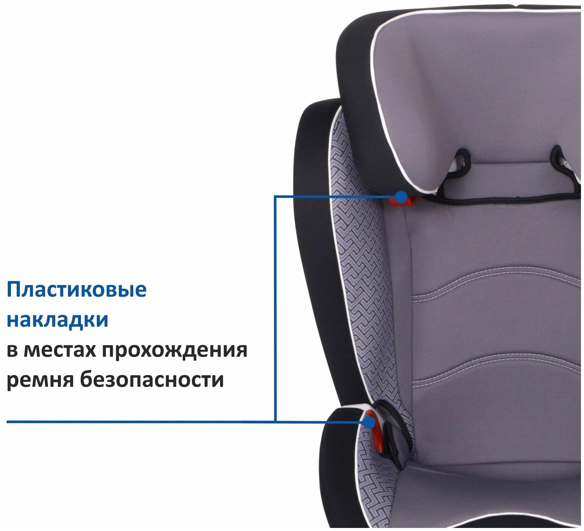 Широкий подголовник который может подниматься по высоте, толстая боковая защита Крепления изофикс |