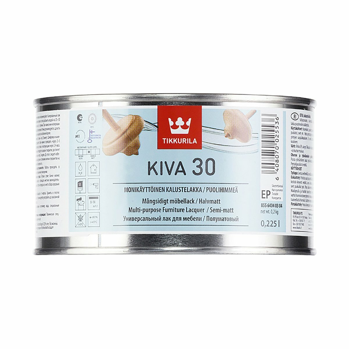 Лак акрилатный для мебели полуматовый Kiva 30 (Кива 30) TIKKURILA 0,225 л бесцветный (база EP)