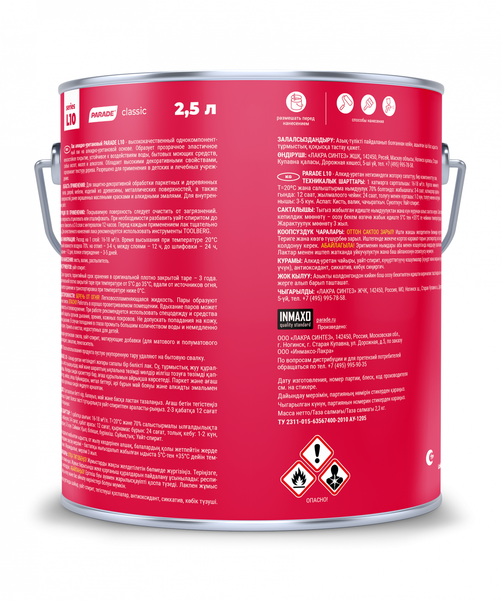 Лак паркетный алкидно-уретановый Parade L10 10л, матовый