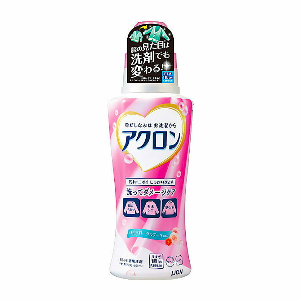 LION Жидкое средство для стирки ACRON деликатных тканей, шерсти, аромат цветов, 450 мл. бутылка с колпачком-дозатором