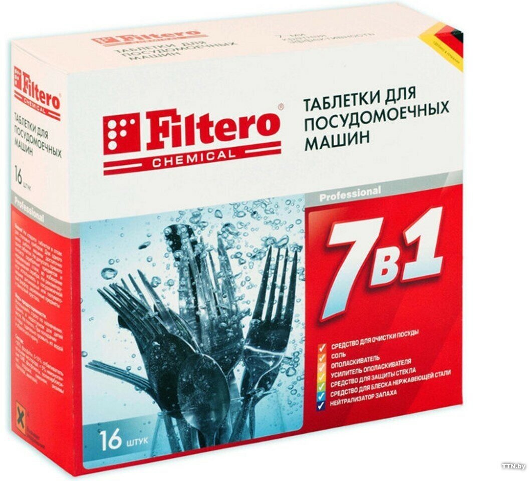 Таблетки для посудомоечной машины Filtero 7 в 1 таблетки, 16 шт., коробка