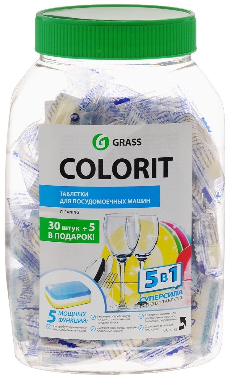 Таблетки для посудомоечной машины GRASS Colorit интересное:
