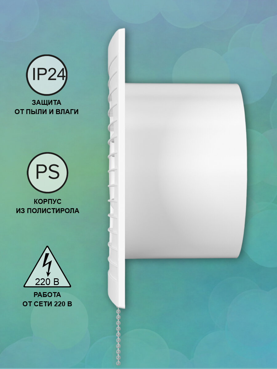 Вентилятор вытяжной осевой AURAMAX A 6-02, с тяговым выключателем, тонкая лицевая панель, D 150 мм, белый
