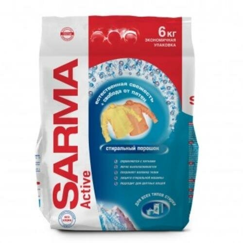 Порошок стиральный SARMA Актив для любого вида белья аромат горная свежесть для всех типов стирки 6кг / моющее средство