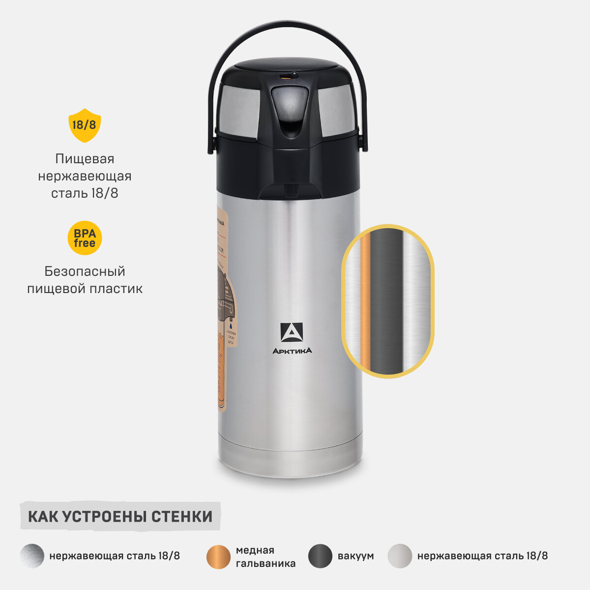 Купить Термос с помпой 3,5 л Арктика 501-3500 термос с пневмонасосом для дома и дачи