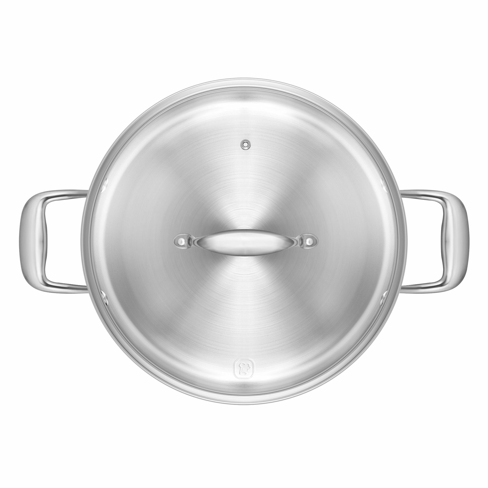| Минусы: | Тонкие стенки, из-за тонкого металла при мытье создаётся ощущение, что можно порезаться об верхний край. Как мне кажется из-за тонких стенок не создаётся эффект запекания, как например в цептере. Отверстие для выхода пара постоянно забивается каплей пара, в принципе как и у многих стеклянных крышек, пока не дунешь в отверстие, пар выходит из под крышки и стекает по стенкам на плиту. Как сковорода не очень, всё-таки пригорает. |