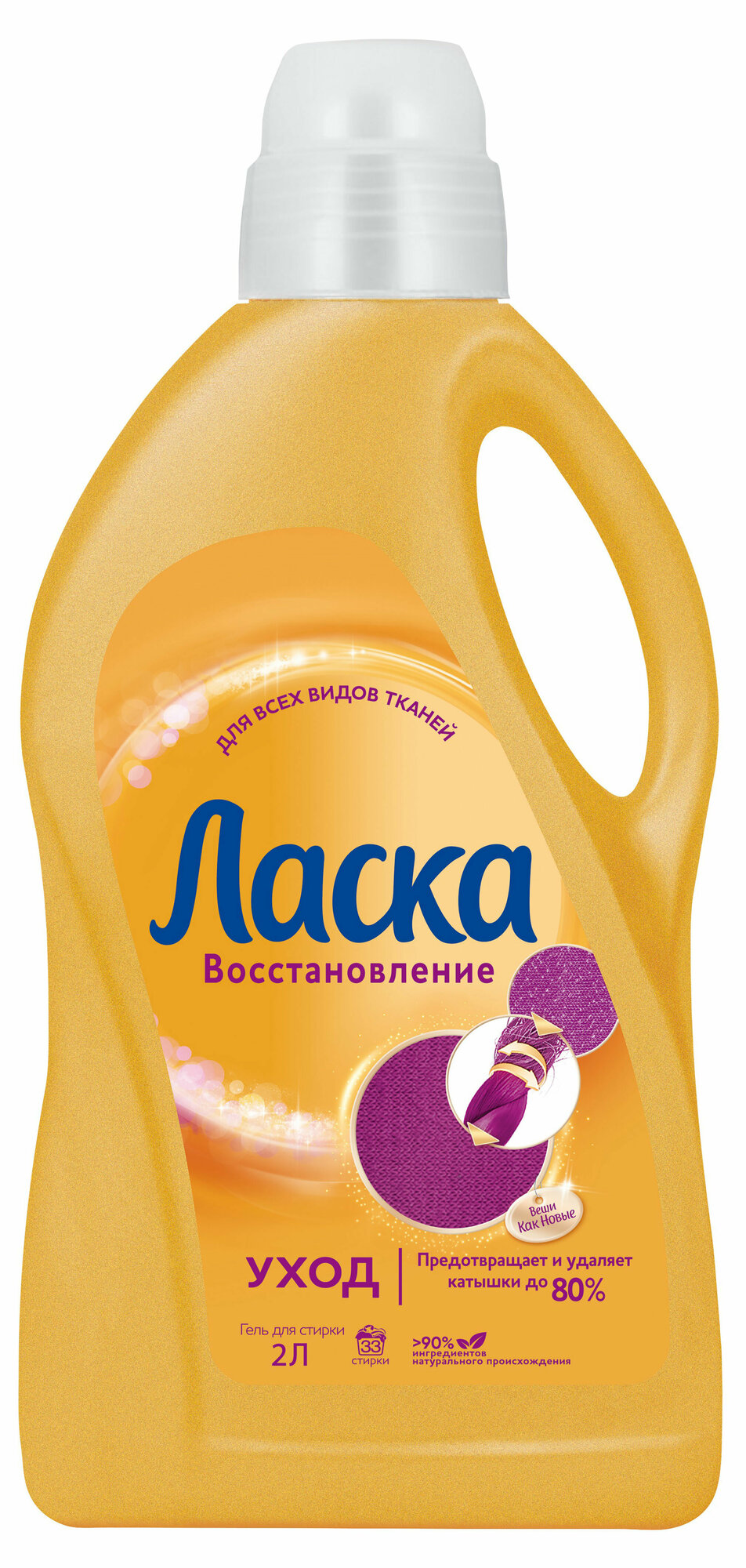 Купить Гель для стирки Ласка Восстановление Уход для всех видов ткани, жидкое средство для стирки 2л (33 стирки)