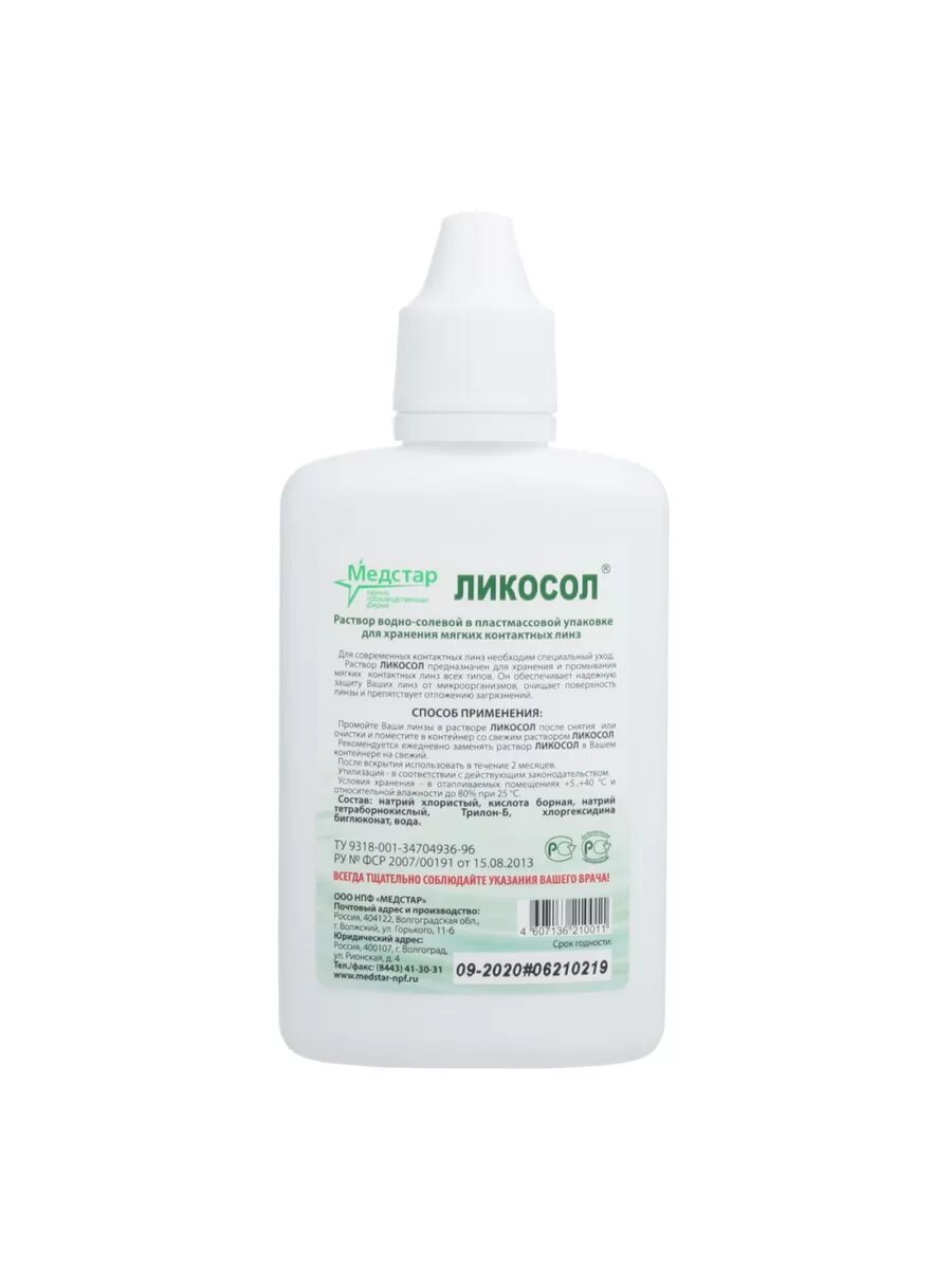 Ликосол раствор водно-солевой для хранения мягких контактных линз фл. 120 мл