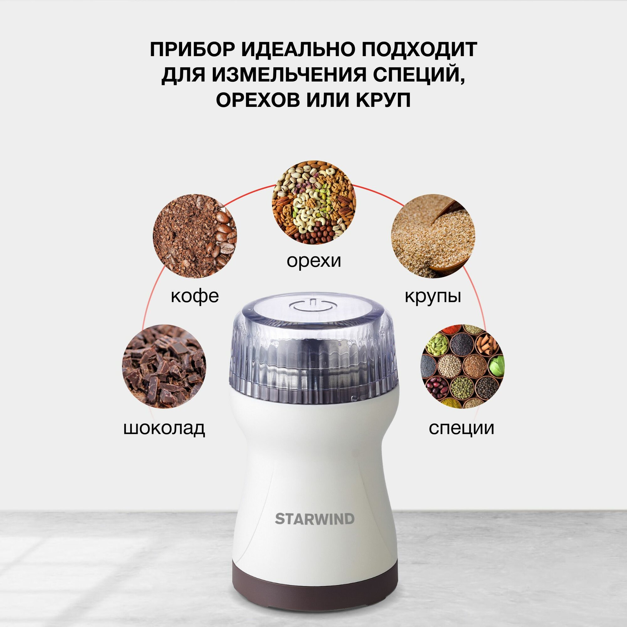 Кофемолка Starwind SGP4422 200Вт сист.помол.:ротац.нож вместим.:40гр белый/коричневый интересное:
