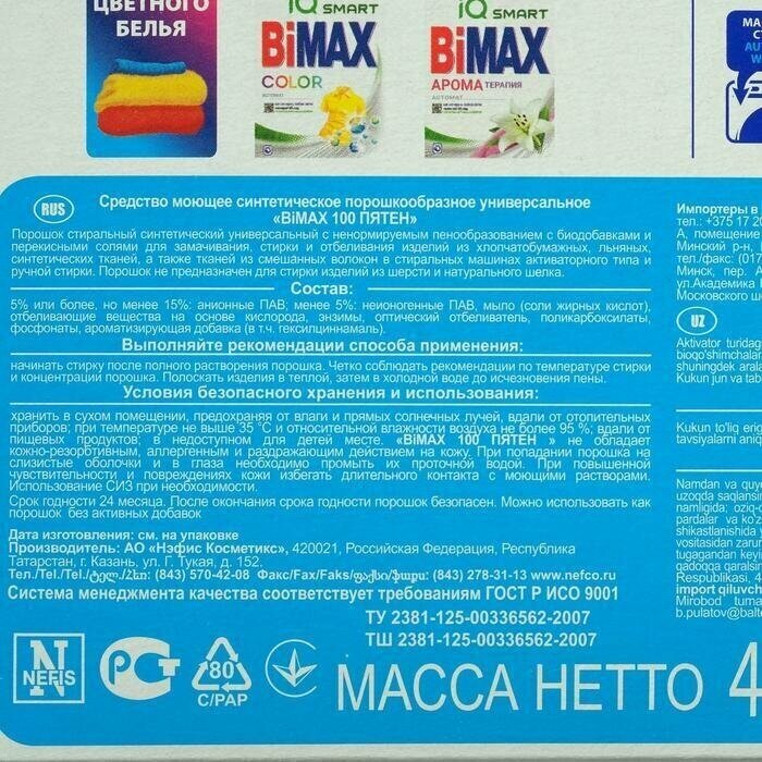 BiMax 100 пятен Стиральный порошок, 400гр