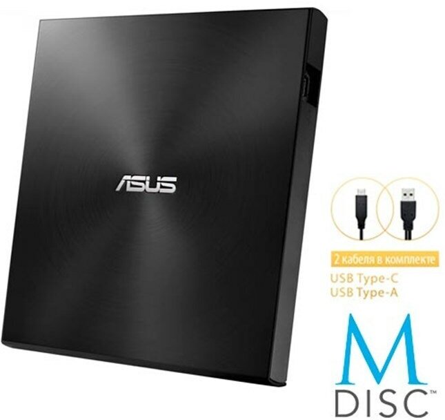 Внешний оптический привод Asus ZenDrive U9M USB 2.0, USB type C, Black (SDRW-08U9M-U/BLK/G/AS)