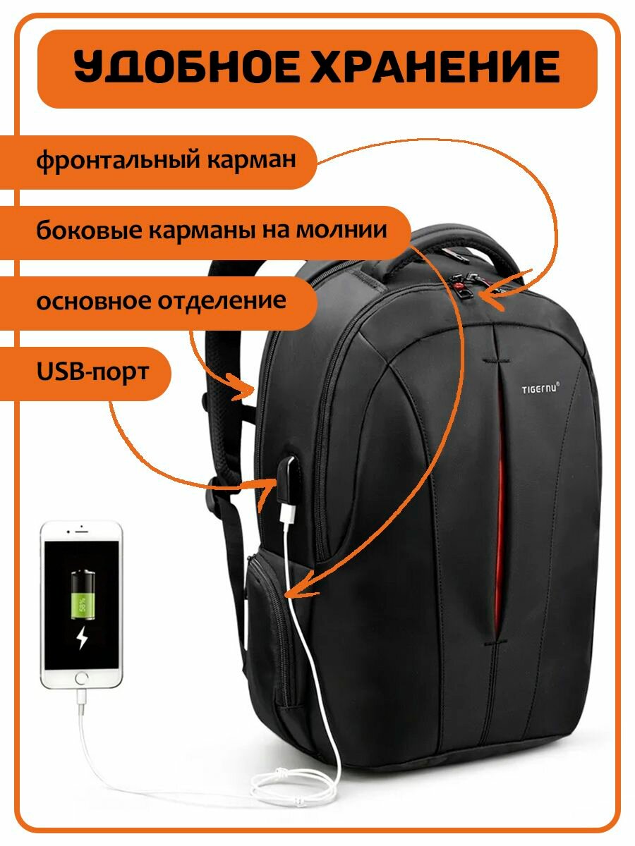 Рюкзак Tigernu T-B3105, черный/оранжевый, 15,6" интересное: