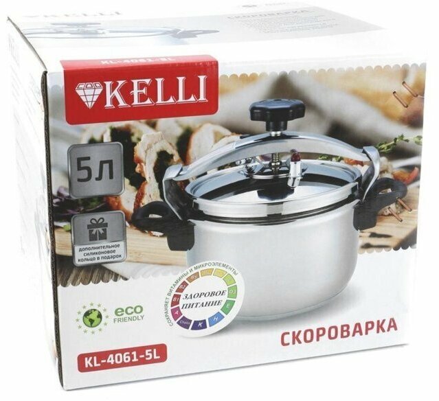 | Минусы: | Экономия времени достигается за счет увеличения давления. Вода закипает при меньшей температуре, снижаются потери тепла. Удается добиться отличных характеристик и приготовить различные вкусные блюда. Производство конструкции происходит из алюминия, внешнее покрытие выполнено из нержавеющей стали. Скороварка Kelli KL-4061 очень прочная. Изделие переносит высокое давление, исключается деформация. Металл выделяется стойкостью к внешним воздействиям. Он не подвергается процессам коррозии, что окажется важно при эксплуатации. |