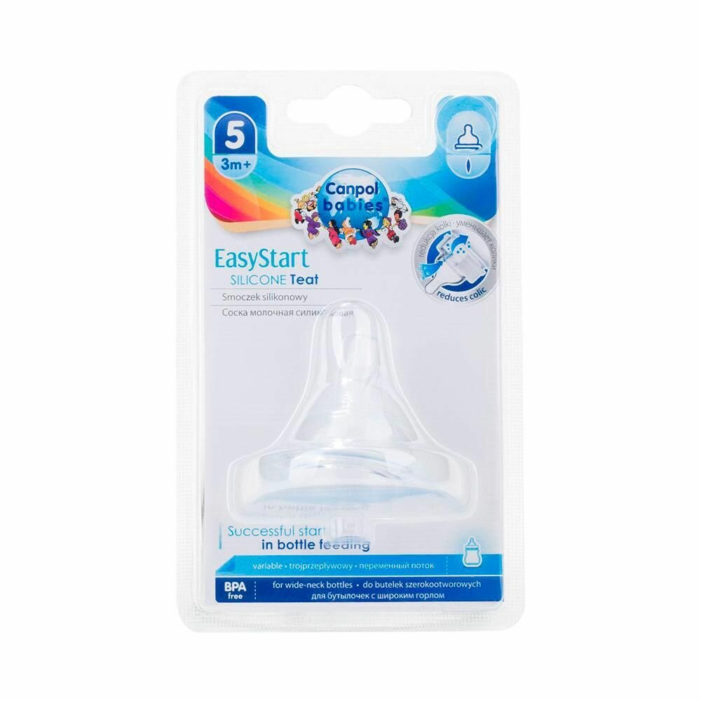 Соска Canpol Babies анатомическая для бутылочек с широким горлом EasyStart силикон, 1 шт, переменный поток интересное: