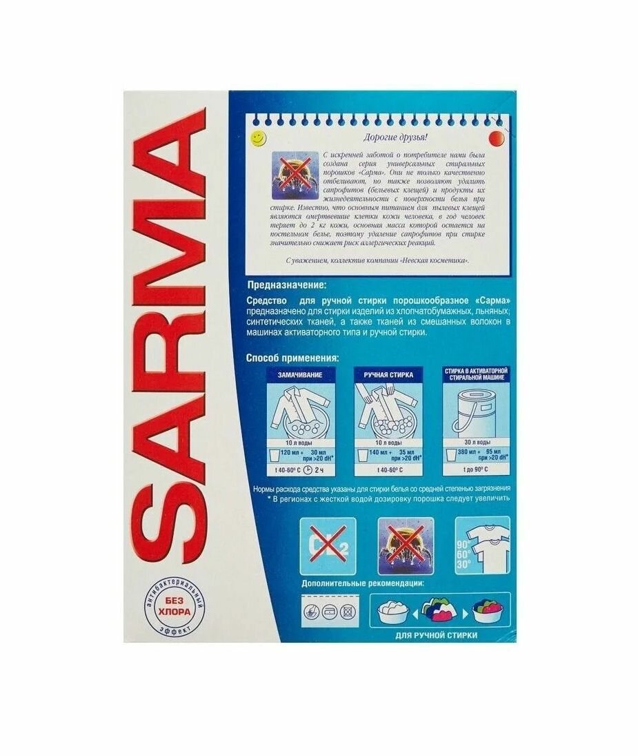 SARMA Стиральный порошок для ручной стирки, 800 гр, 2 штуки